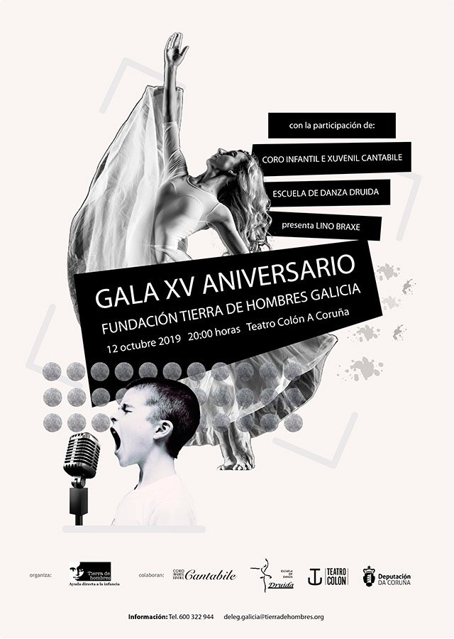Gala Gala XV Aniversario Tierra de Hombres en Galicia PROGRAMACIÓN DA DEPUTACIÓN DA CORUÑA Coa participación de: Coro Infantil e Xuvenil Cantabile Escuela de Danza Druida Presenta o acto Lino Braxe.
